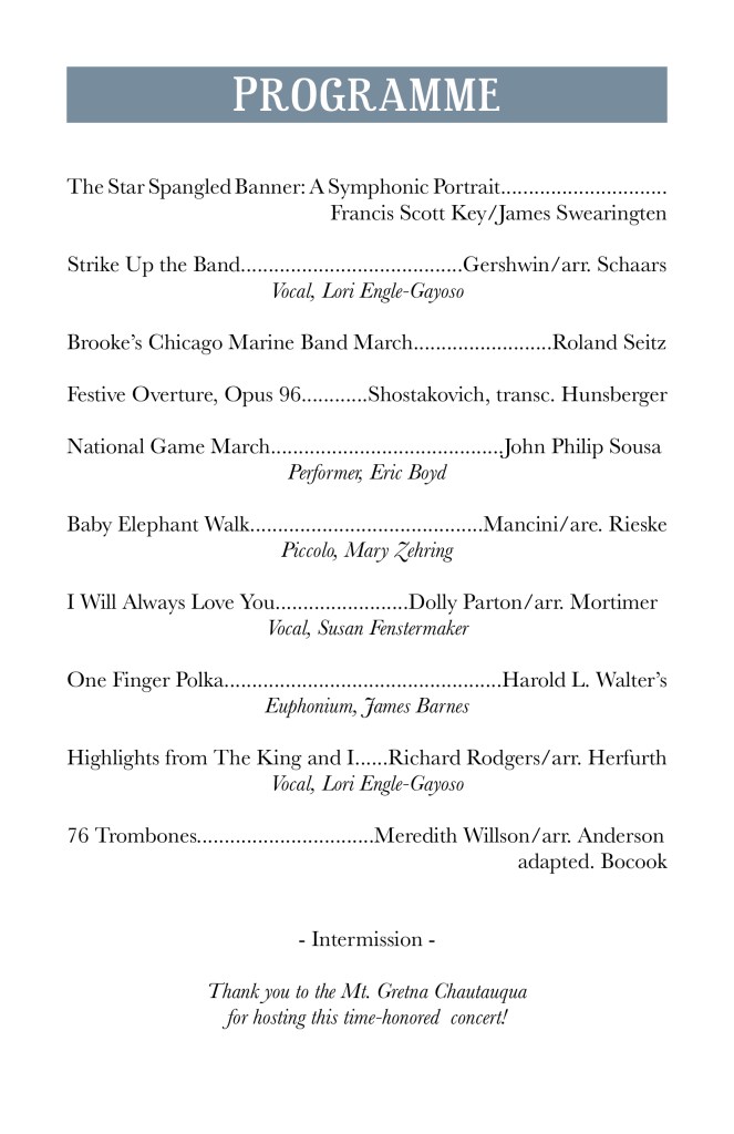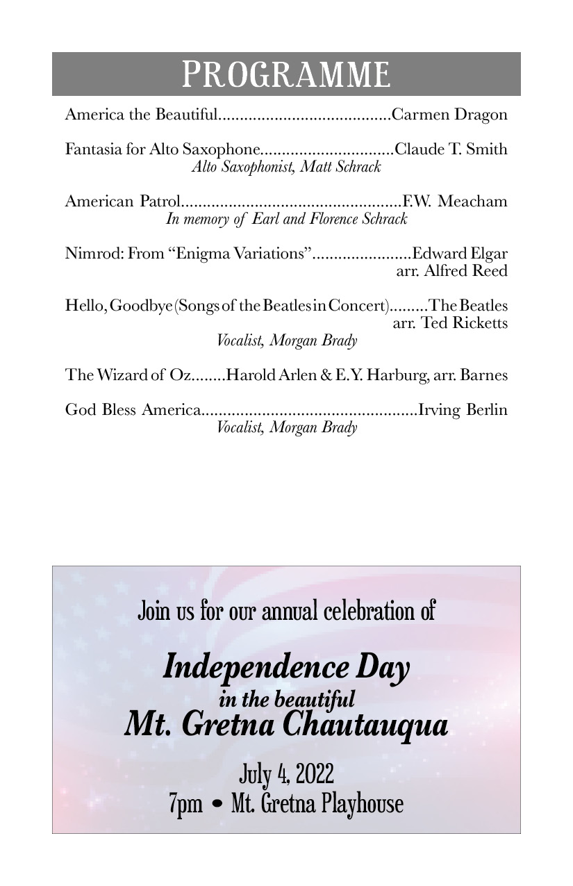 July 4, 2022 – Join us as we celebrate Independence Day in the beautiful Mt. Gretna Chautauqua!
