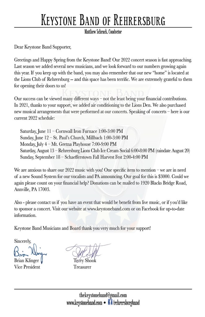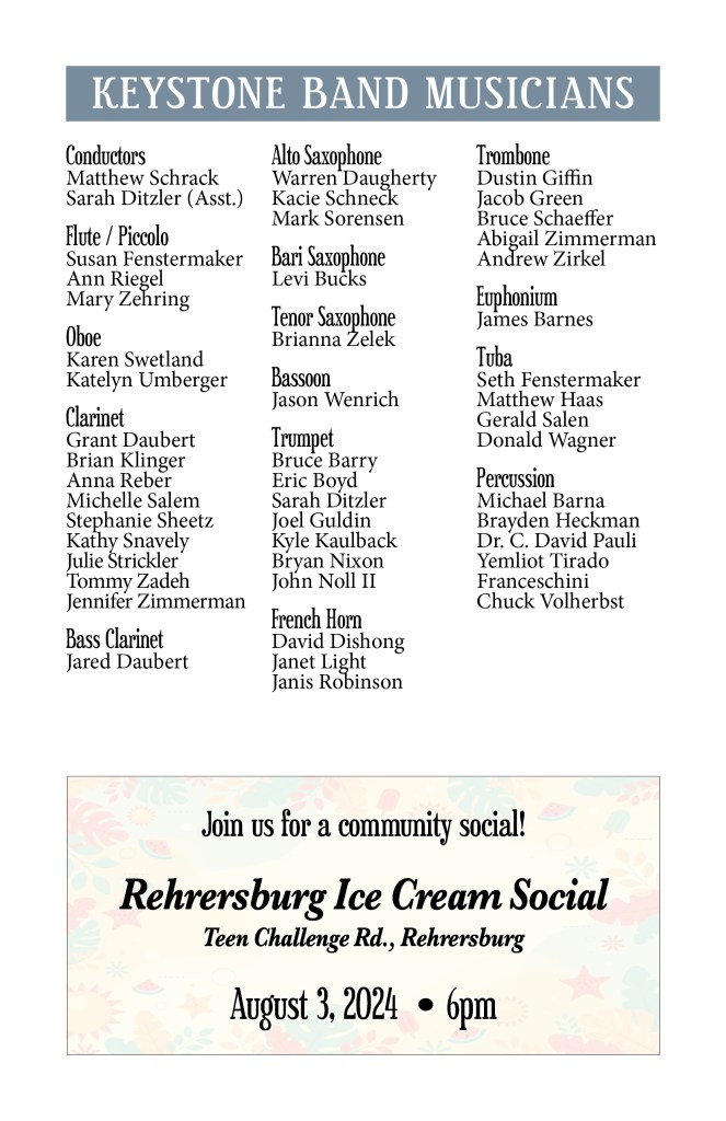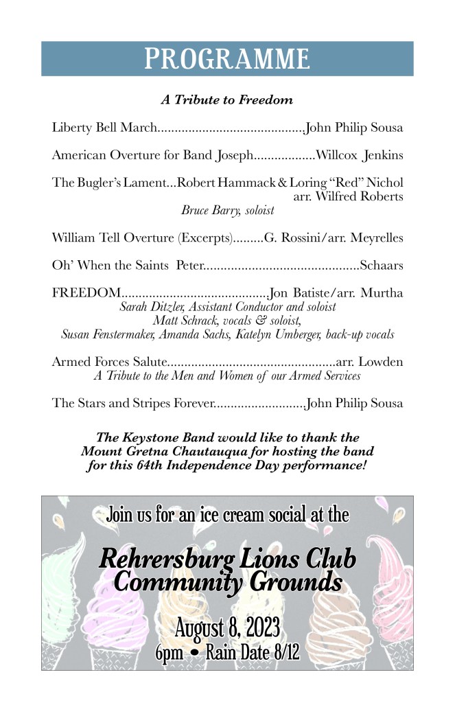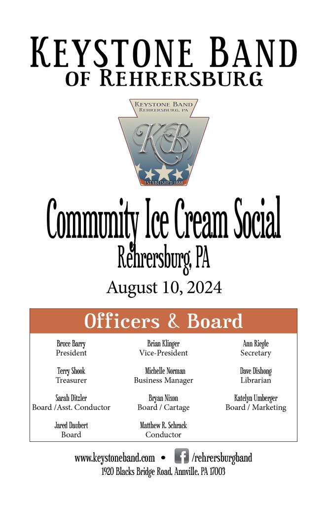 August 13, 2022 – Cool down with us at the Rehrersburg Lions Club for a community concert and ice cream social!