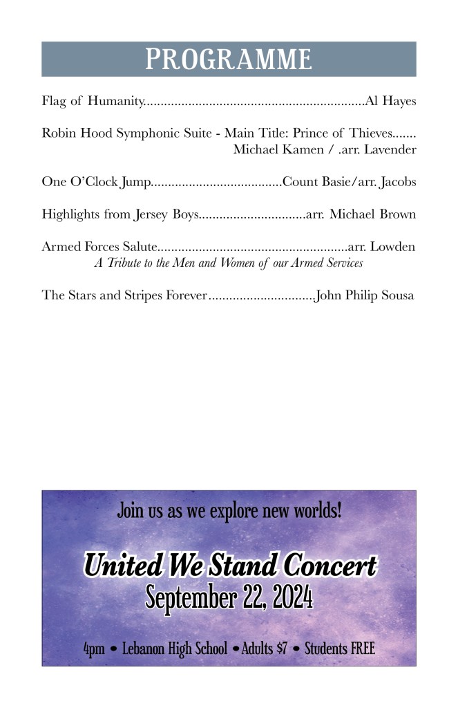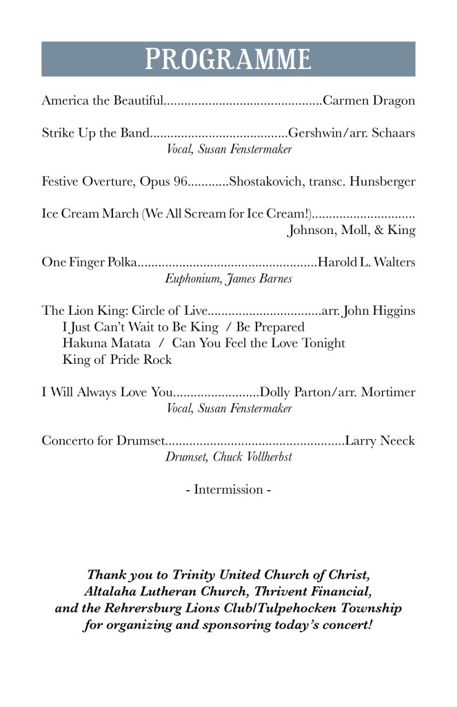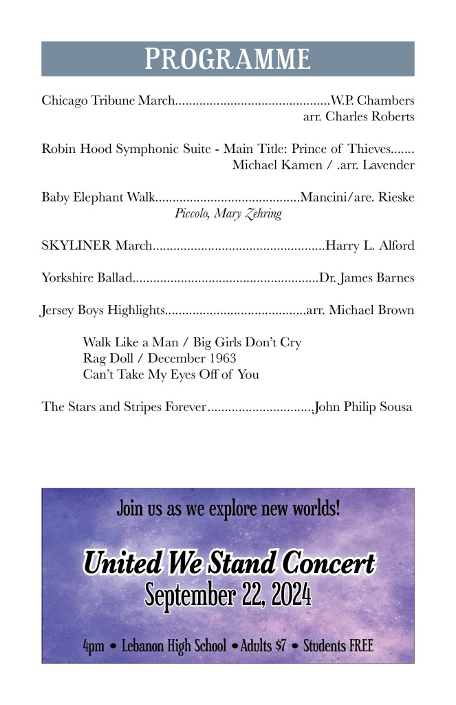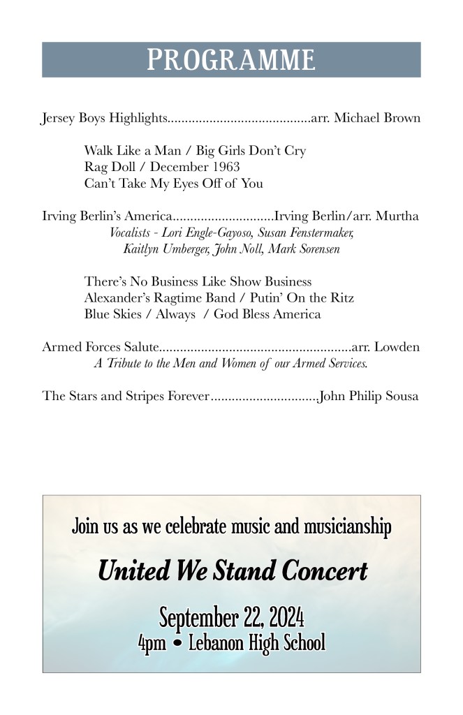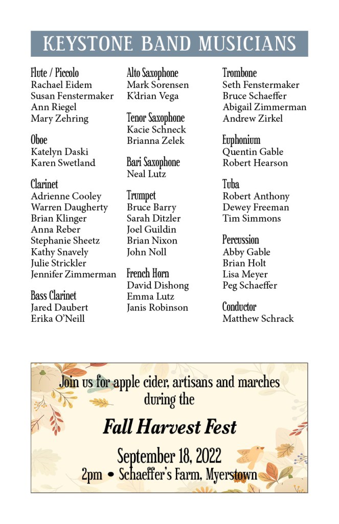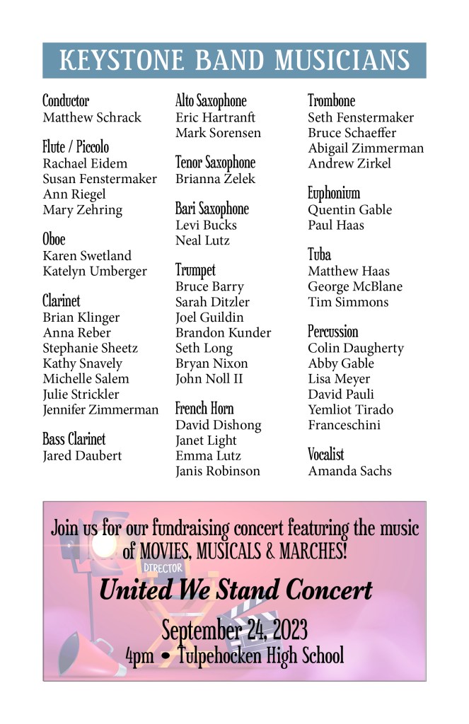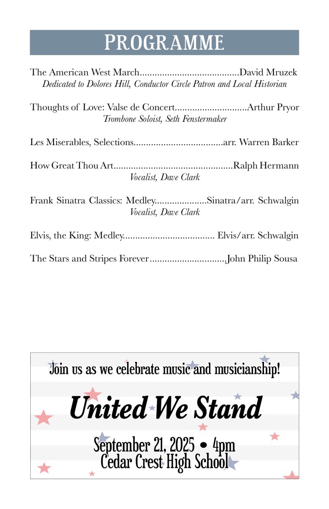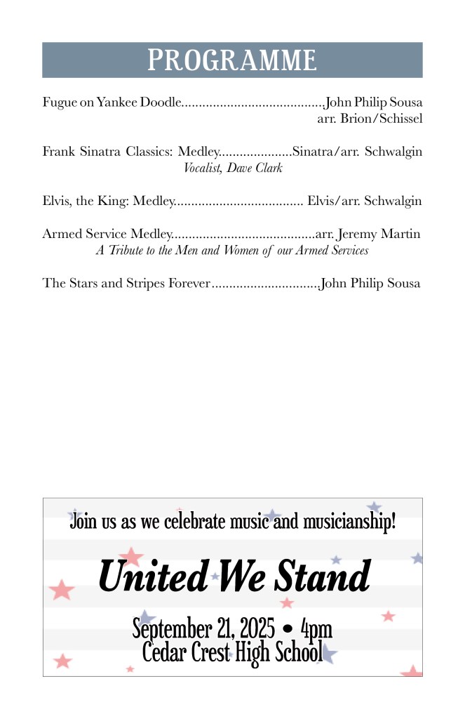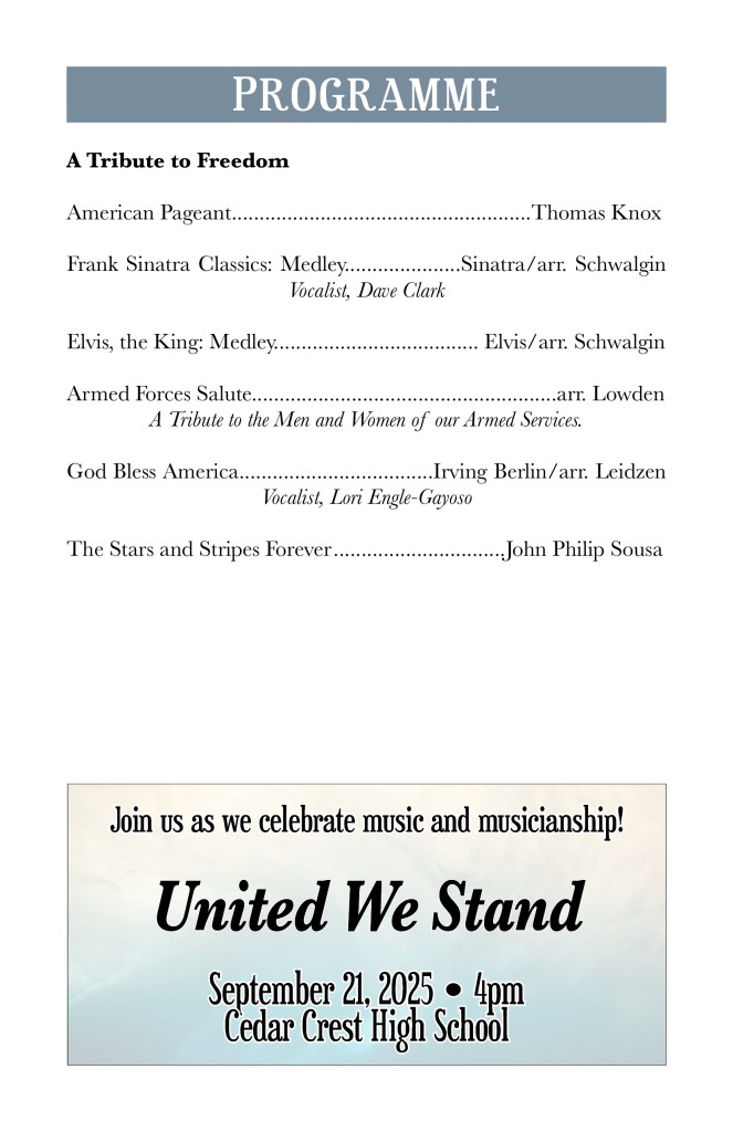 Sept. 21, 2025 – From Classics to Cowbell with Cedar Crest HS. Our annual fall fundraiser concert!